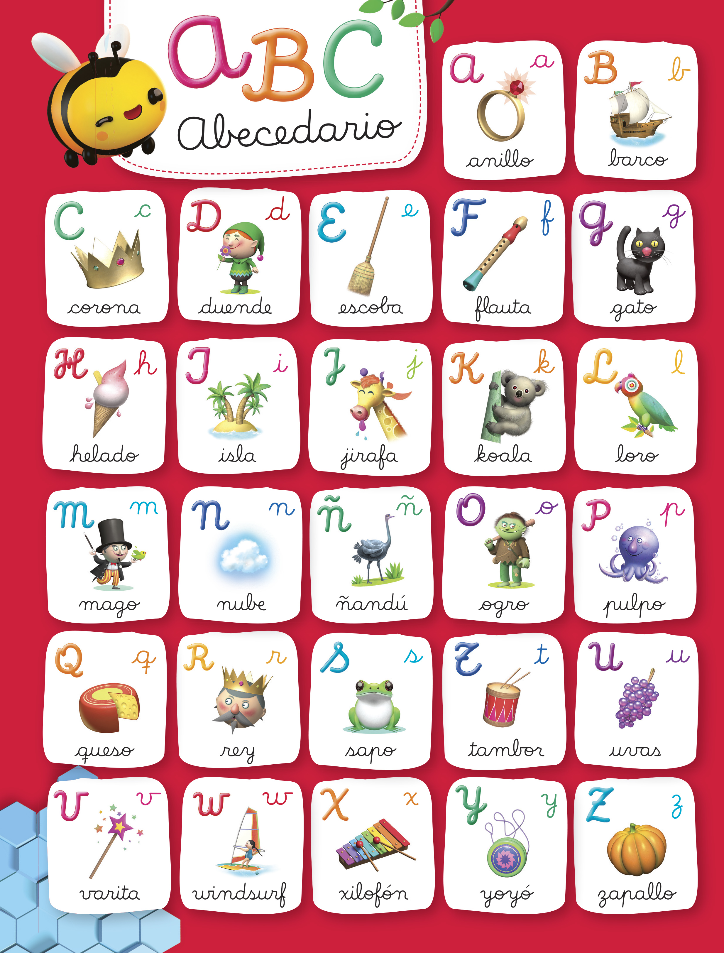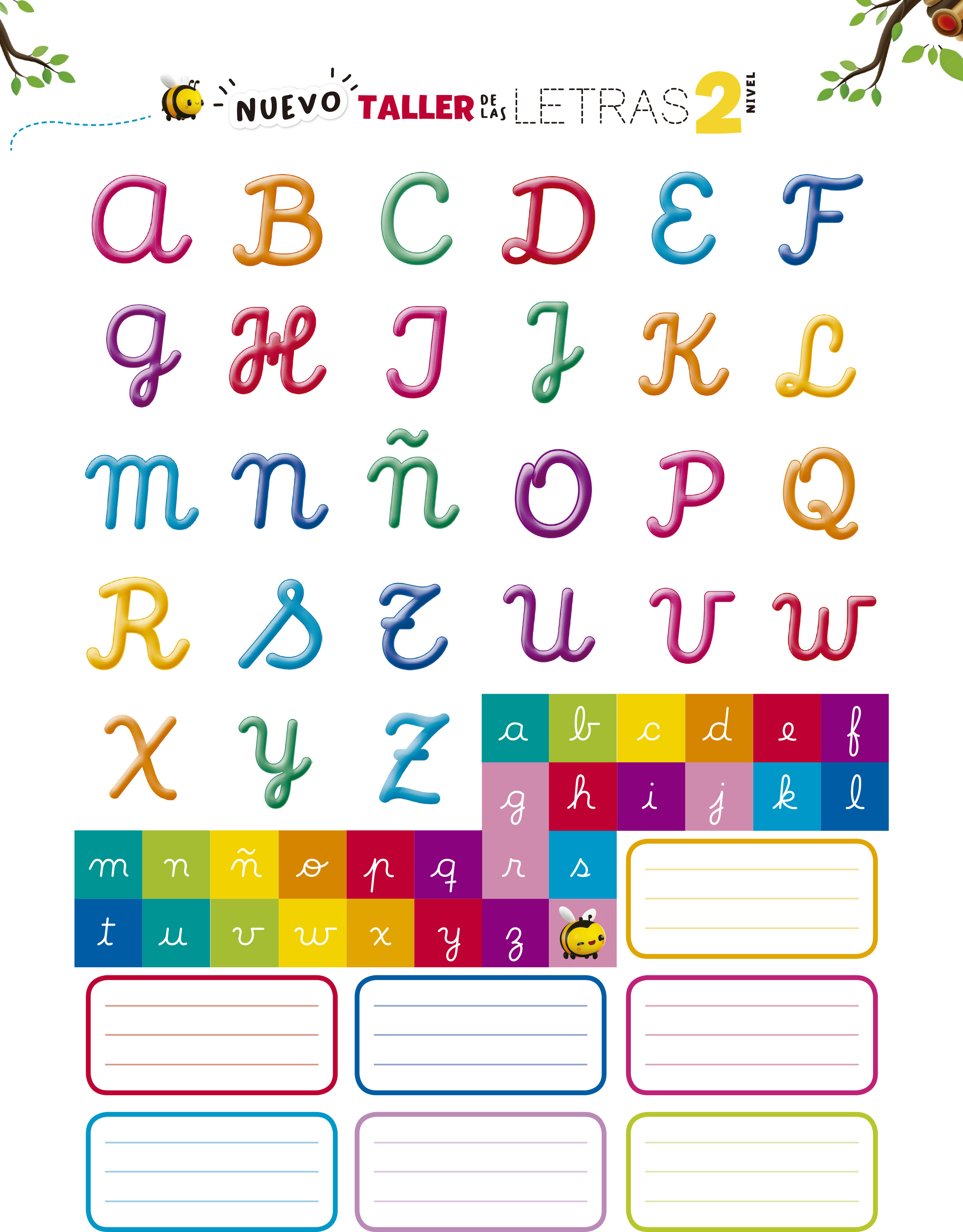 Las primeras páginas proponen el trabajo con el abecedario, como una manera de afianzar el reconocimiento y el trazado correcto de los grafemas, la relación fonema – grafema y la memorización del orden alfabético.